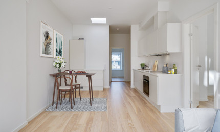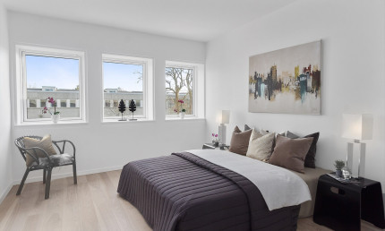 Step inside these lovely, newly renovated townhouses of 83 to 126 m2 with private gardens - and plenty of space for the whole family. Here you'll find HTH kitchen design with handle-free doors, a bathroom with wall-hung toilet and built-in spotlights, and matt lacquered plank flooring. The 58 beautiful homes have been renovated in a light and modern Scandinavian style with underfloor heating throughout. There is plenty of space in the common living areas, living room and kitchen-dining room, large bedrooms and 2 beautiful bathrooms.